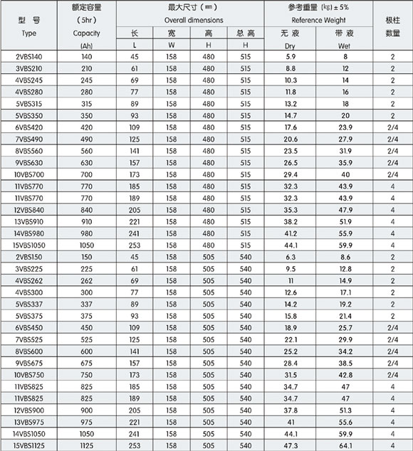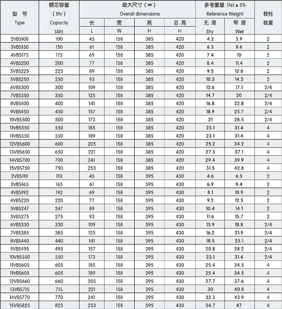主要用途:為替代進口,本公司研制了符合英國BS標準要求的VBS系列牽引用鉛酸蓄電池,為國內進口電動叉車和電動牽引車配套,也可用于其他電動牽引車輛,本產口還可用于出口。